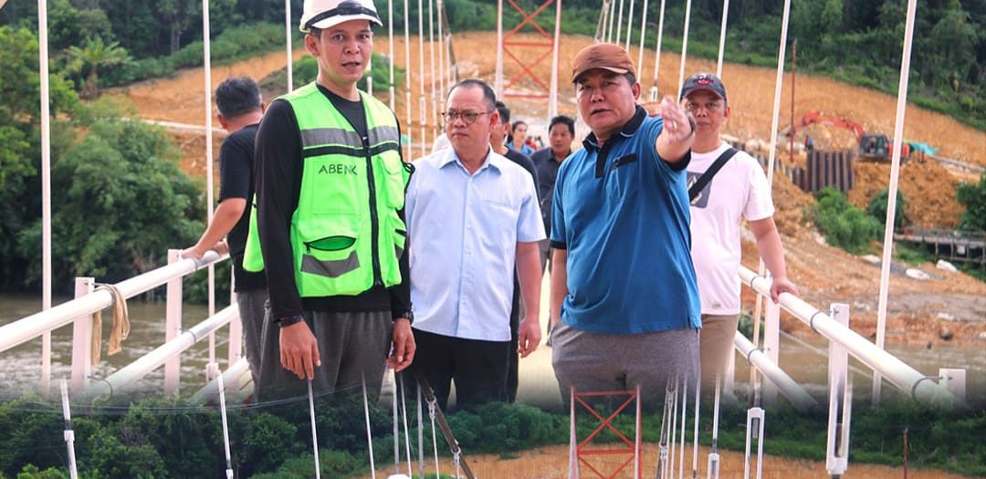 progreskaltim.id Pembangunan jembatan gantung di Kampung Datah Suling, Kecamatan Long Pahangai, Mahakam Ulu, terus dikebut. Jumat, 30 November 2023, Bupati Mahulu, Bonifasius Belawan Geh, meninjau proyek tersebut. Dalam sebuah kesempatan, ia menyebut, persentase pembangunan jembatan tersebut telah mencapai 90 persen.