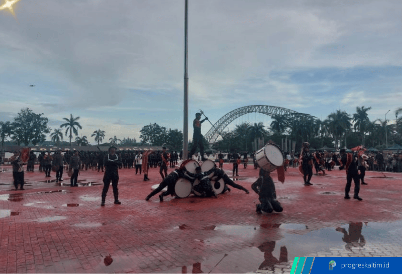 Pasukan Brimob yang berjalan kaki didampingi kendaraan lapis baja dari Mako Brimob Polda Kaltim menampilkan parade atraktif, mulai dari formasi baris berbaris hingga atraksi bela diri. Kehadiran Marching Band Sakunta Loka Satbrimob semakin menyemarakkan suasana dengan penampilan musik kolaboratif di Lapangan Upacara.